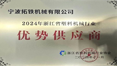 • 喜報!拓鐵再獲浙江省塑機(jī)協(xié)會“優(yōu)勢供應(yīng)商”榮譽 浙江省塑料機(jī)械行業(yè)協(xié)會于2024年11月在深圳召開一屆二次會員代表大會暨二次理事會議,屆時公布了“優(yōu)勢供應(yīng)商”評選結(jié)果,并對獲獎單位頒發(fā)榮譽獎牌和證書。